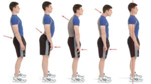 예를 들어, 어깨가 말려 있고, 골반이 무너진 자세는