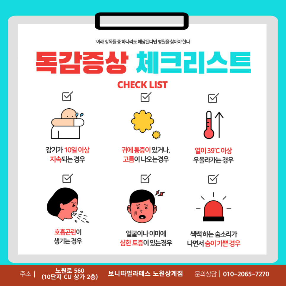 많은 분들을 위해서 독감 체크리스트를 알려드리도록 할게요!